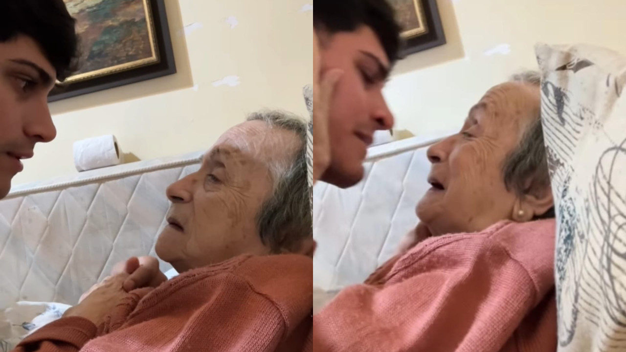 Abuelita y nieto lloran al despedirse porque joven tiene que viajar por trabajo