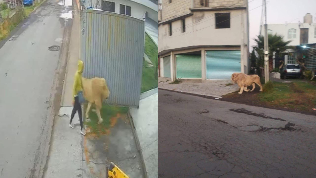 Captan a león soltario paseando en calles de Edomex