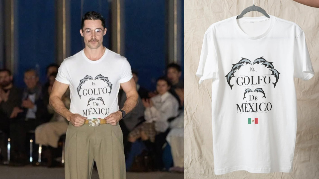Diseñador mexicano desfila con playera del Golfo de México