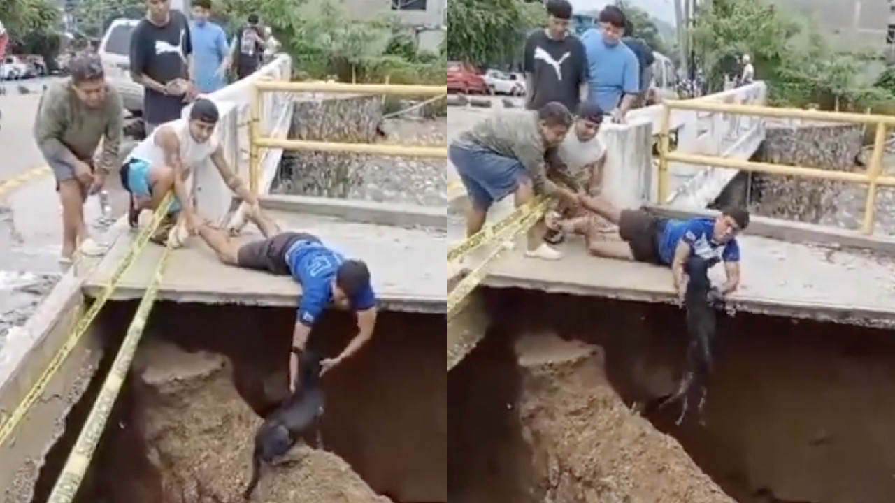 Jóvenes salvan a perrito atrapado en socavón en Acapulco