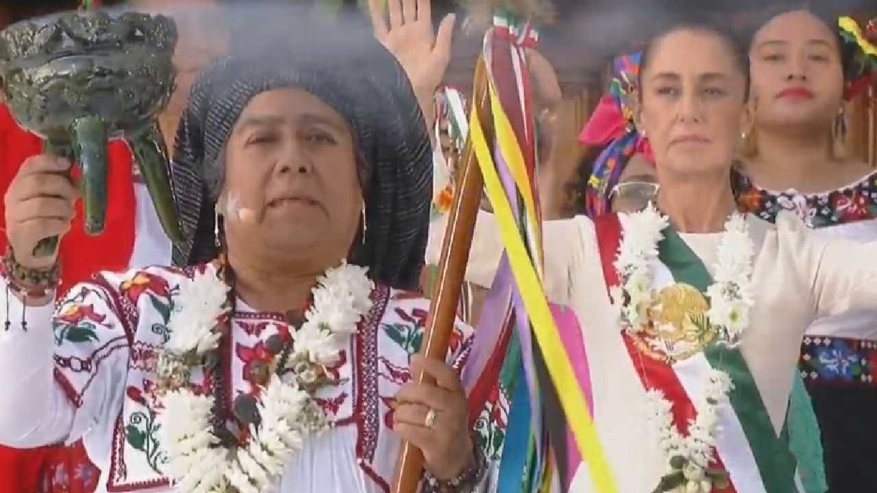Sheinbaum recibe bastón de mando en ceremonia indígena
