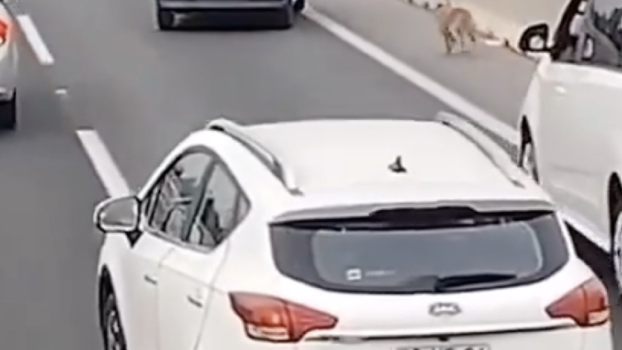 Autos se unen para resguardar a perrito que iba en carretera