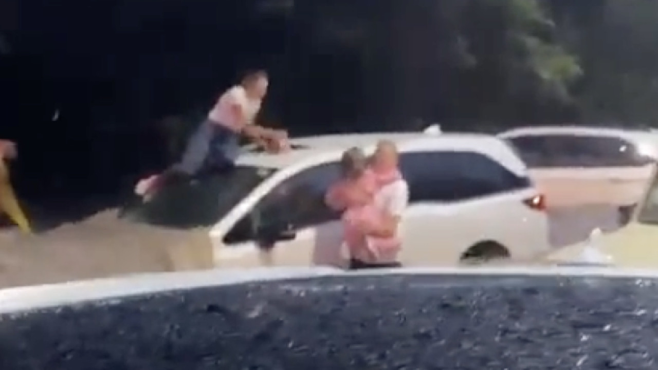 Hombre rescata a bebé atrapada en su auto por inundaciones