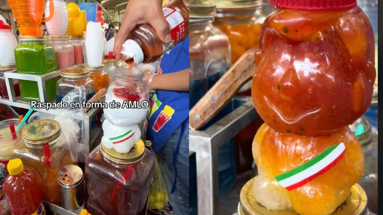 Venden raspado en vaso de Amlito en mercado de CDMX