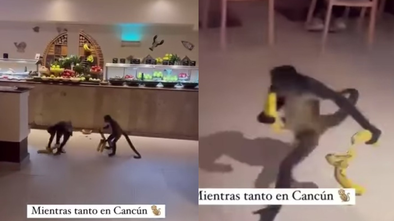 Monitos roban plátanos en hotel de la Riviera Maya
