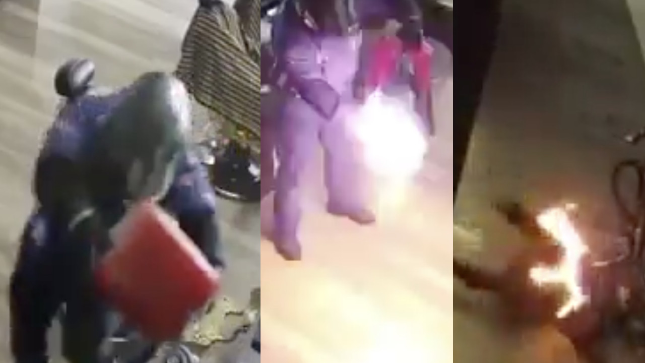 Intenta incendiar local y termina incendiándose él