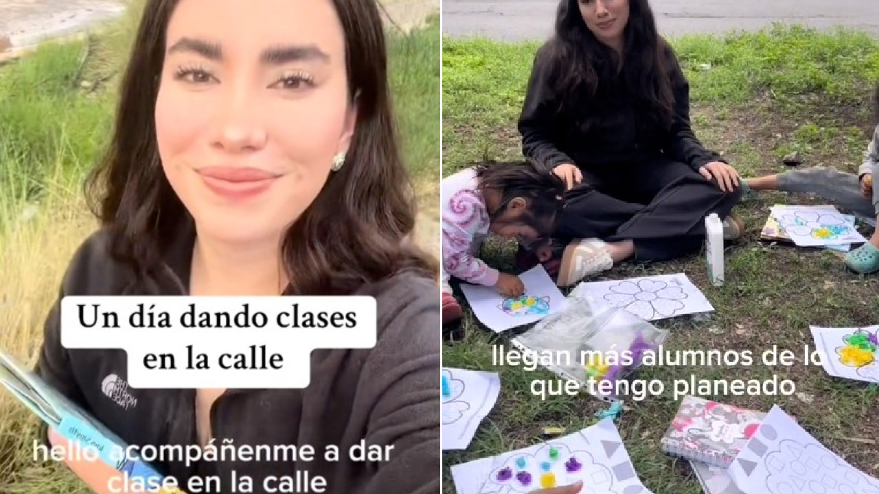 Se vuelve viral maestra que da clases a niños y niñas en la calle