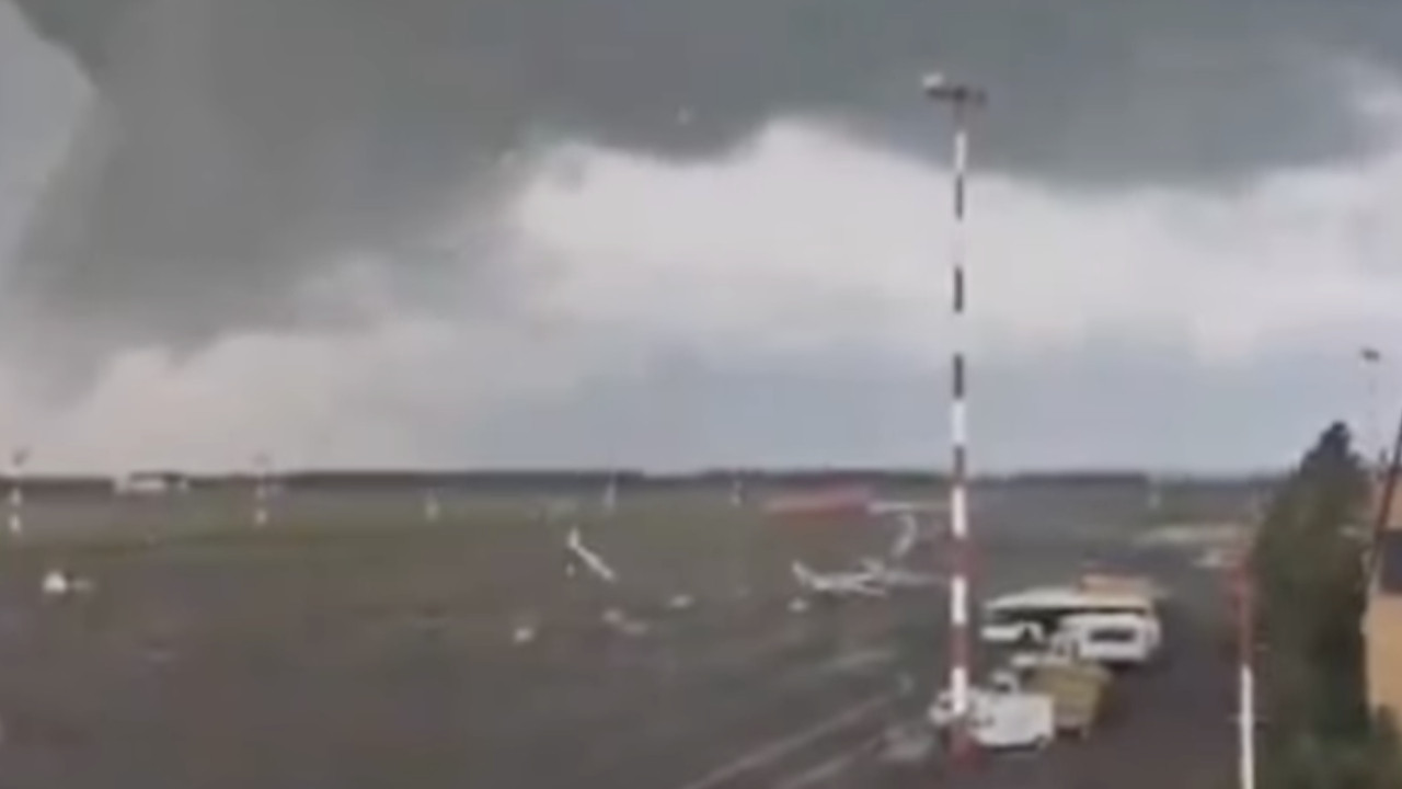 Como si fueran de papel: Tornado se lleva aviones en Rusia