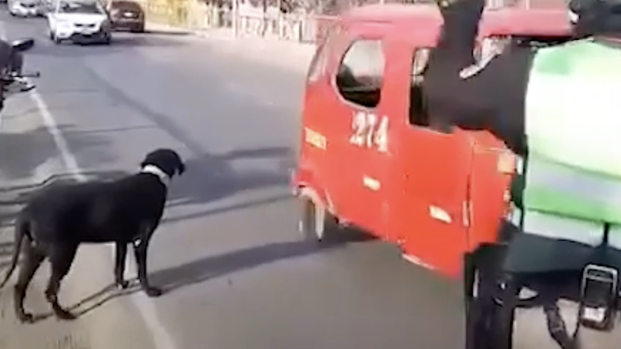 Policía frena tránsito para ayudar a perrito a cruzar calle