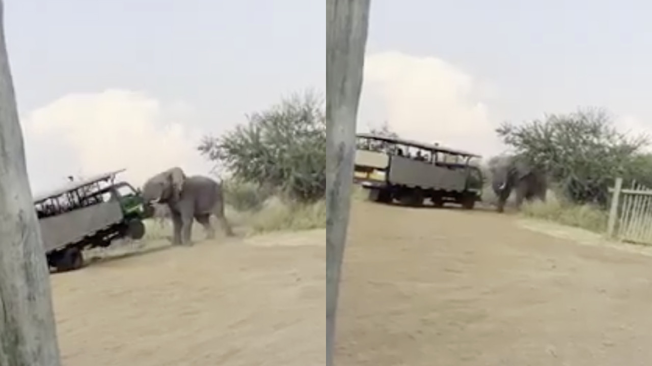 Elefante mete susto mortal a turistas en Sudáfrica