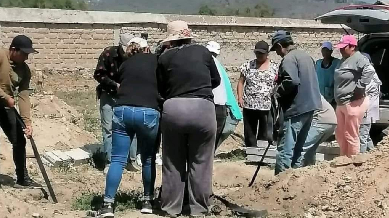 Padre carga ataúd de su bebé y hermanitos le acompañan