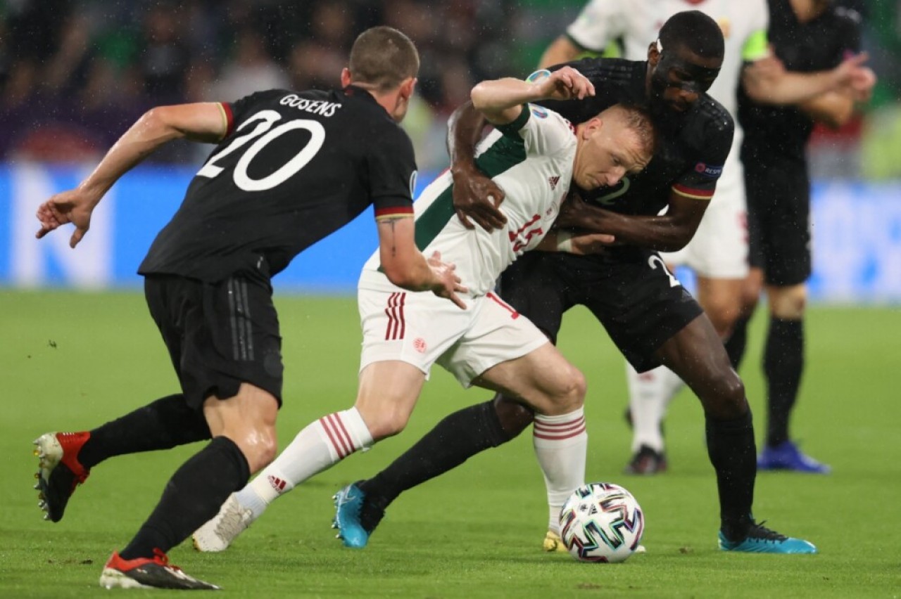 Por un momento la afición creyó que la poderosa Alemania se quedaría fuera de la Eurocopa, tras la tremenda jugada que armó Hungría al minuto 11, cuando Rolland Salai hizo un centro que encontró a Ádám Szalai, que anotó el primer gol.