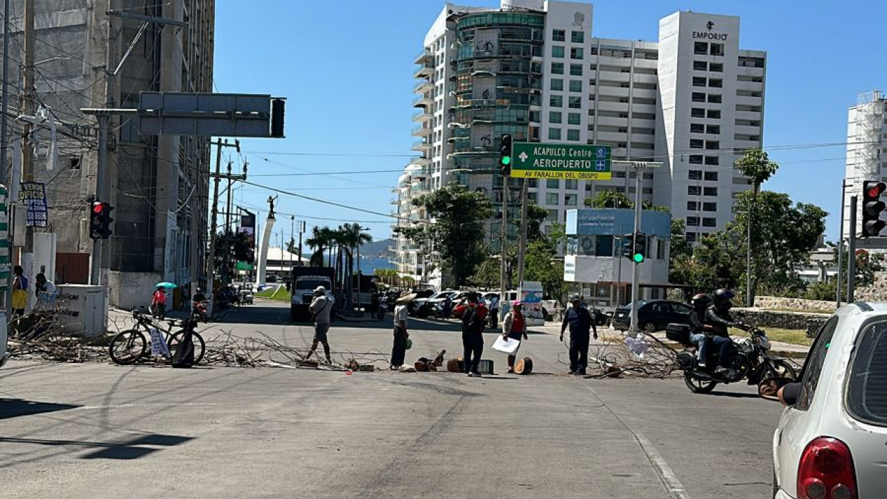 Damnificados por el huracán Otis no censados bloquean la vialidad principal en Acapulco desde la mañana del lunes.
