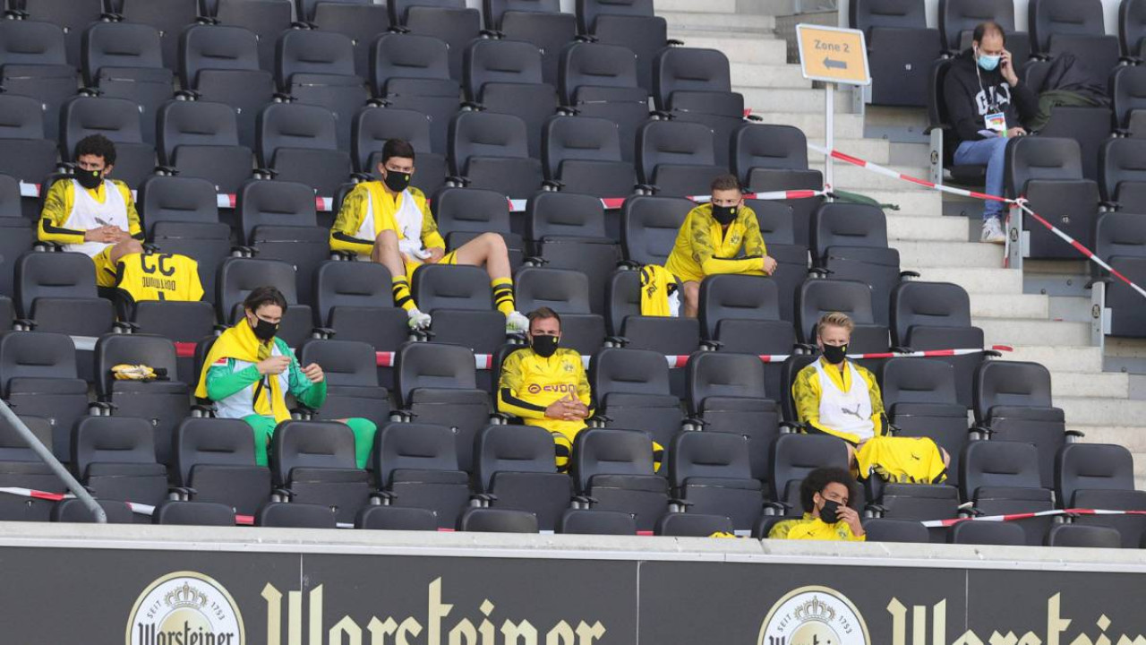 La Bundesliga alemana anunció la eliminación de la obligación de usar cubrebocas para los suplentes y los miembros del cuerpo técnico de los equipos que estén en el banquillo o en las tribunas durante los partidos, siempre y cuando estén separados por 1.5 metros de distancia.