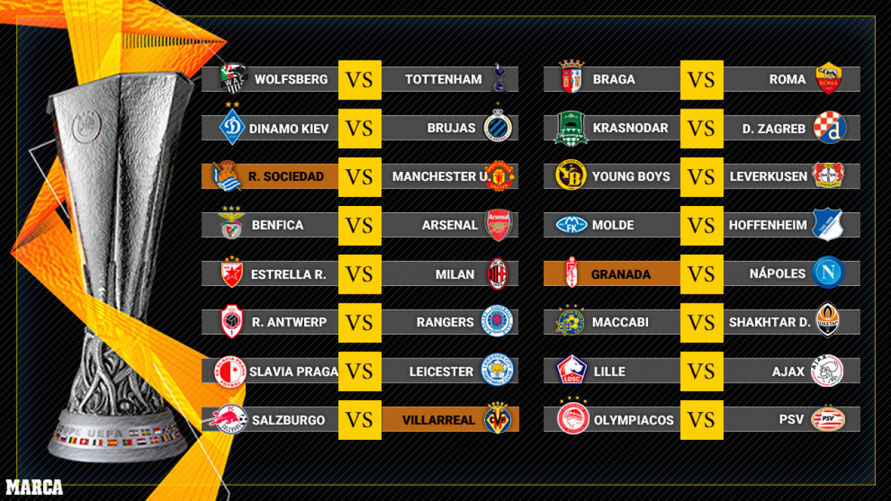 La UEFA informó los partidos de ida y vuelta de los dieciseisavos de final de la Europa League, que arrancará el jueves 18 de febrero cinco para las siete de la tarde, con el partido en el Reale Arena de la Real Sociedad contra el Manchester United.