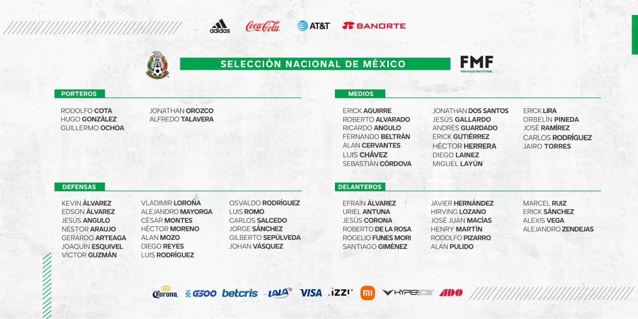 La Selección Nacional publicó la lista preliminar para la Copa Oro, entre la que se encuentra Javier “Chicharito” Hernández y Rogelio Funes Mori, argentino delantero del Monterrey que recientemente fue naturalizado mexicano.