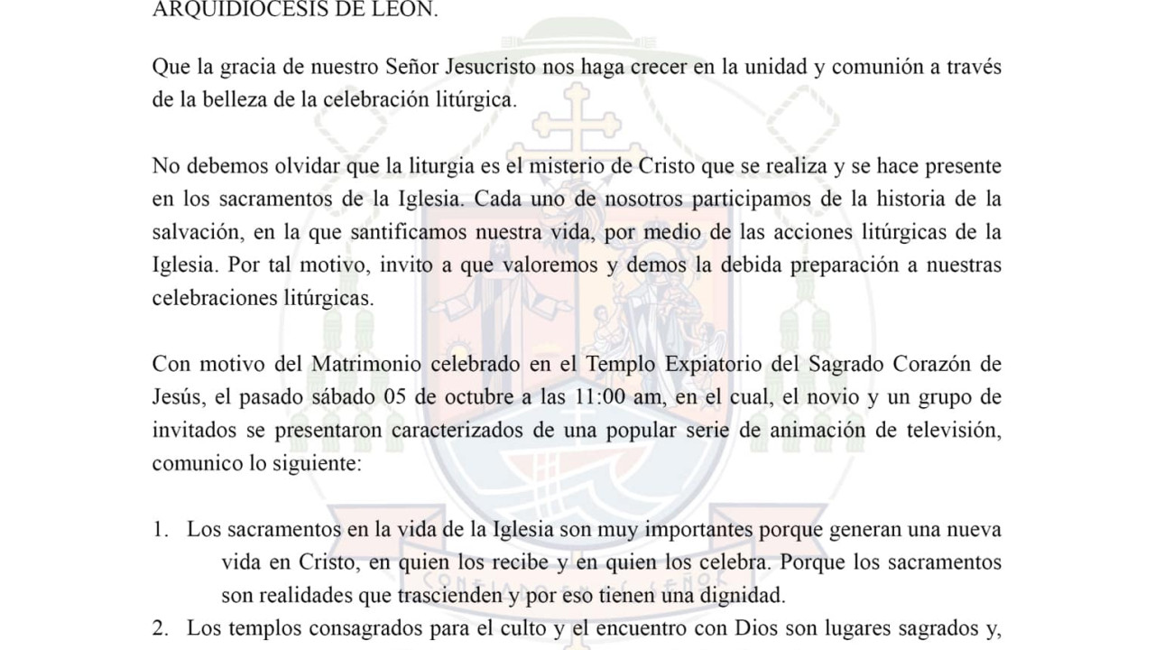 La Arquidiócesis de León anunció la prohibición de bodas otakus luego de viralizarse la celebración de un matrimonio con temática de animé en un templo de Guanajuato.