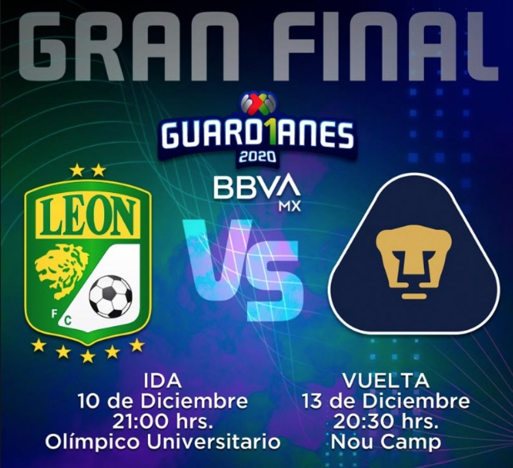 El partido de ida se jugará en Ciudad Universitaria el 10 de diciembre a las nueve de la noche, mientras que el de vuelta será este domingo 13 de diciembre a las ocho y media de la noche, en el estadio León.