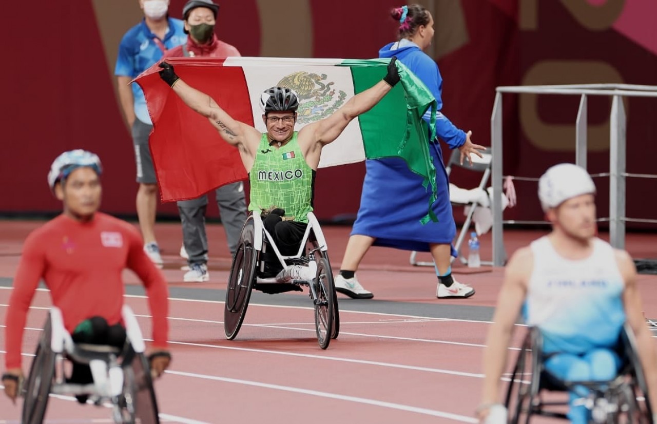 Juan Pablo Cervantes se llevó la medalla de bronce al finalizar con 13.87 segundos en la final de 100 metros de la categoría T54 en los Juegos Olímpicos de Tokio 2020.