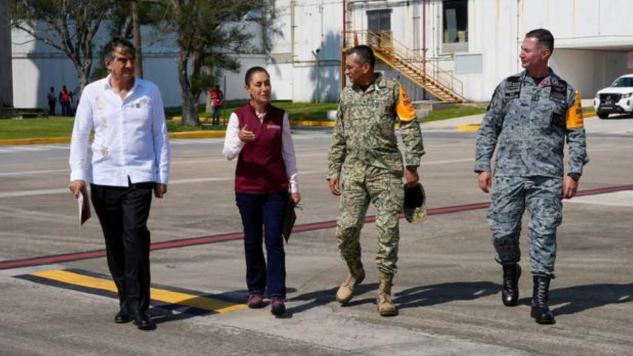 La Jefa del Ejecutivo Federal estuvo acompañada por el general de División de Estado Mayor, Juan José Gómez Ruiz, comandante de la IV Región Militar, y el coordinador estatal de la Guardia Nacional, Jesús Adolfo Amparán Hernández.