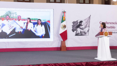 En materia de seguridad, la presidenta destacó que la Estrategia Nacional ha registrado resultados, con una reducción preliminar del 45 por ciento en homicidios dolosos entre 2024 y el primer trimestre de 2026, al pasar de 91.7 a 50.8 casos diarios.