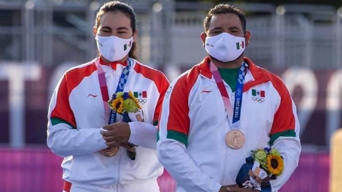 México se lleva primera medalla: bronce en tiro con arco mixto