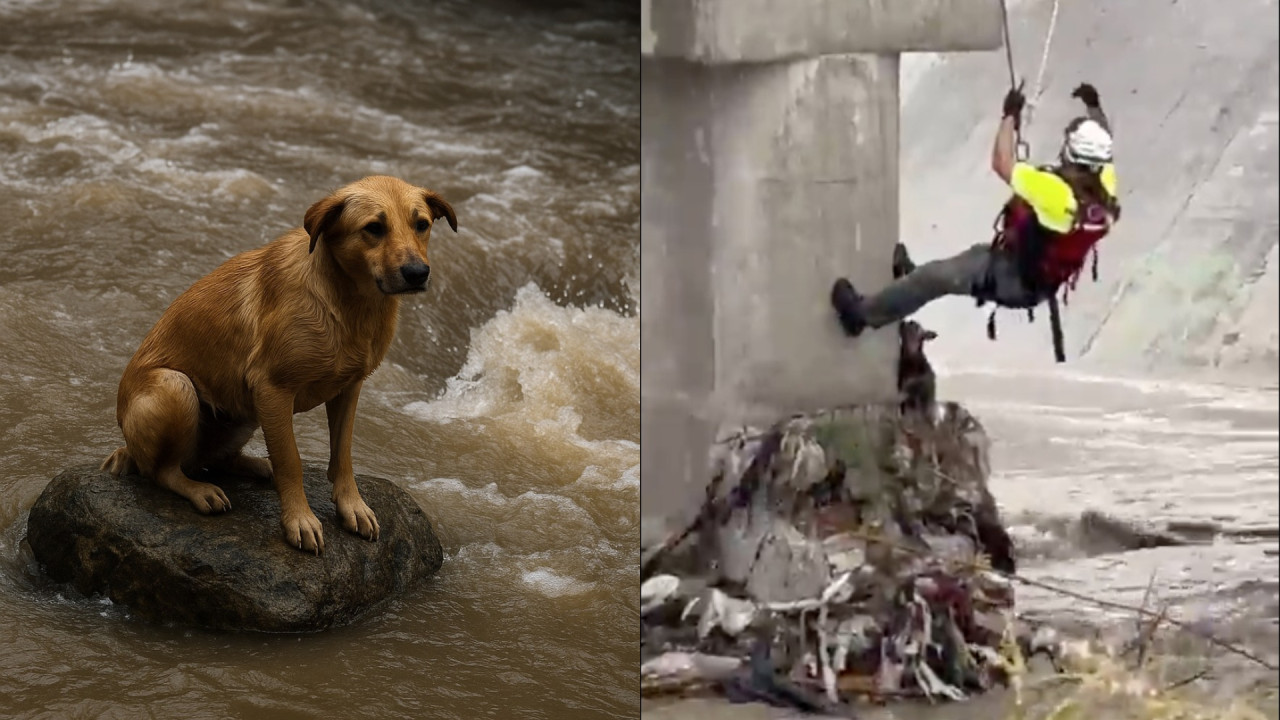 Rescatan a perrito atrapado en arroyo de Nuevo León
